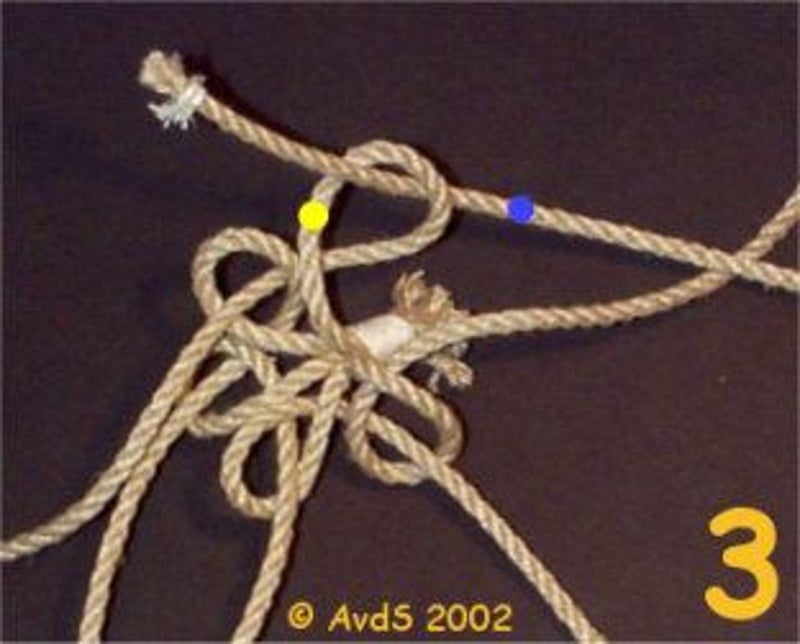 In photograph 10 and 11 you can see how the strands on the under side of the knot are doubled. Take care that when laying the strands parallel that you keep on the inside!